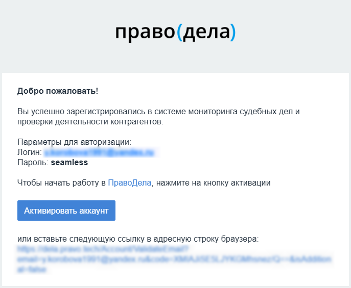 Если пользователь не активировал свой аккаунт в течении двух дней после регистрации, ему на почту будет отправлено письмо с повторным запросом для активации учетной записи в ПравоДела.