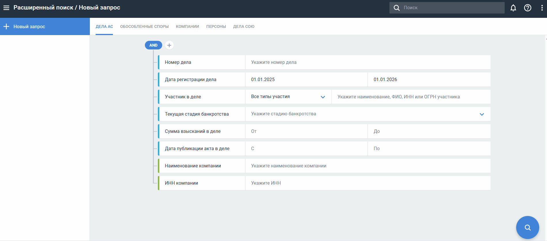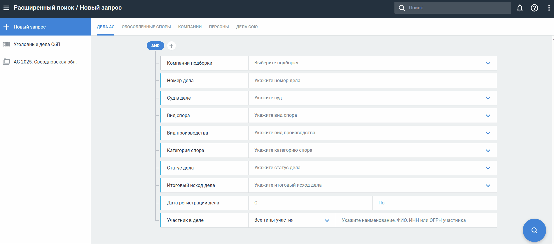 Откройте расширенный поиск по делам, ОС, компаниям, делам СОЮ или персонам.