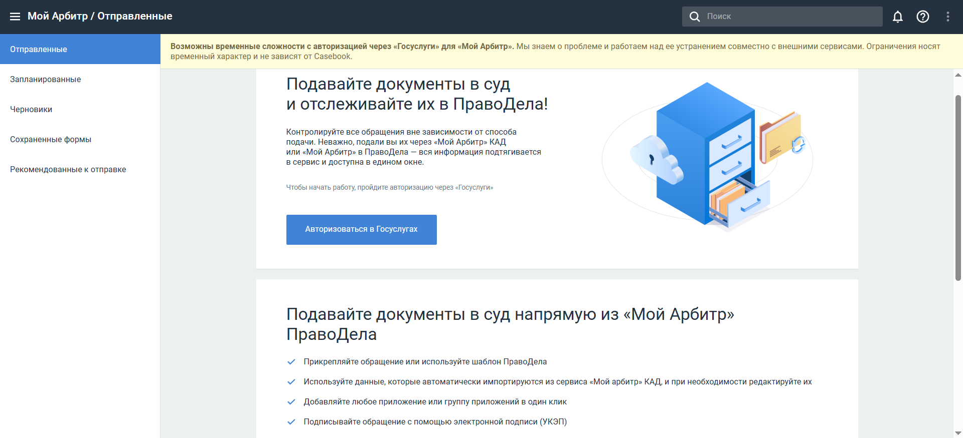 Внимание! Работа в разделе "Мой арбитр" доступна пользователям тарифа "Pro".
