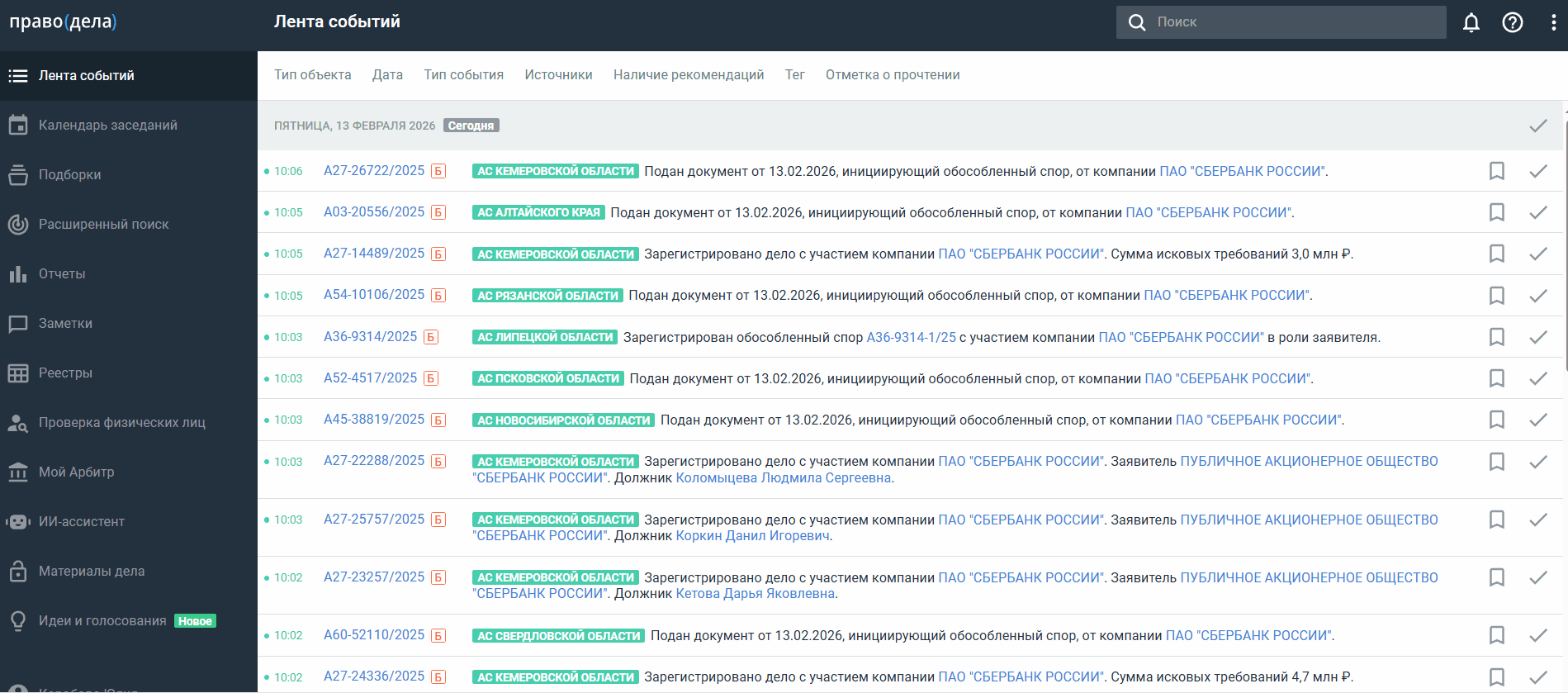 Можно скачать календарь заседаний по делам АС и пользовательские календари в формате CSV или XLSX для работы офлайн: