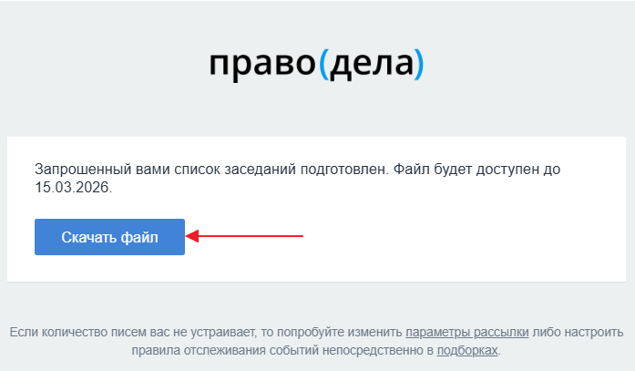 Файл будет отправлен на электронную почту. В письме нажмите кнопку Скачать файл.