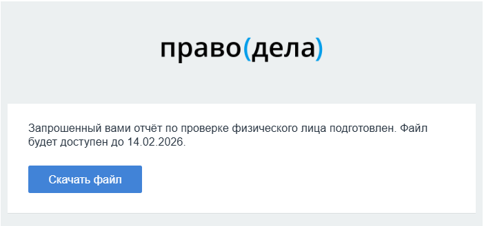 В письме, которое придет на почту пользователя, содержится информация о сроке доступности файла и кнопка Скачать файл.